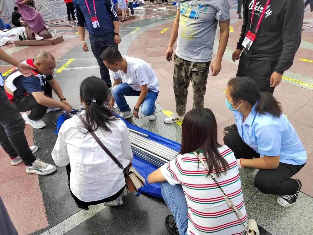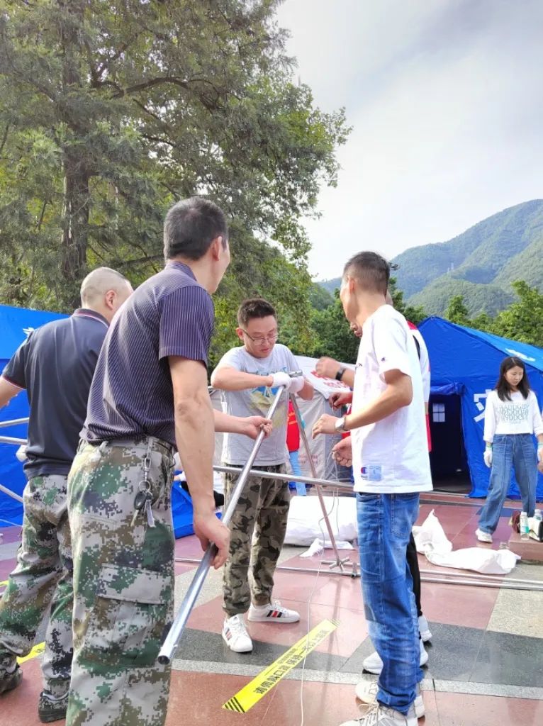 “球盟会官网入口后援一分队”协助震后安置点搭建帐篷及铺设折叠床