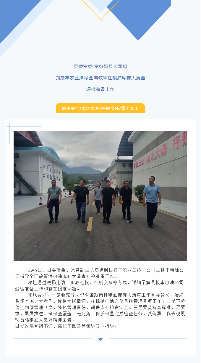 县委常委 常务副县长邓旭 到球盟会官网入口农业指导全国政策性粮油库存大清查 迎检准备工作