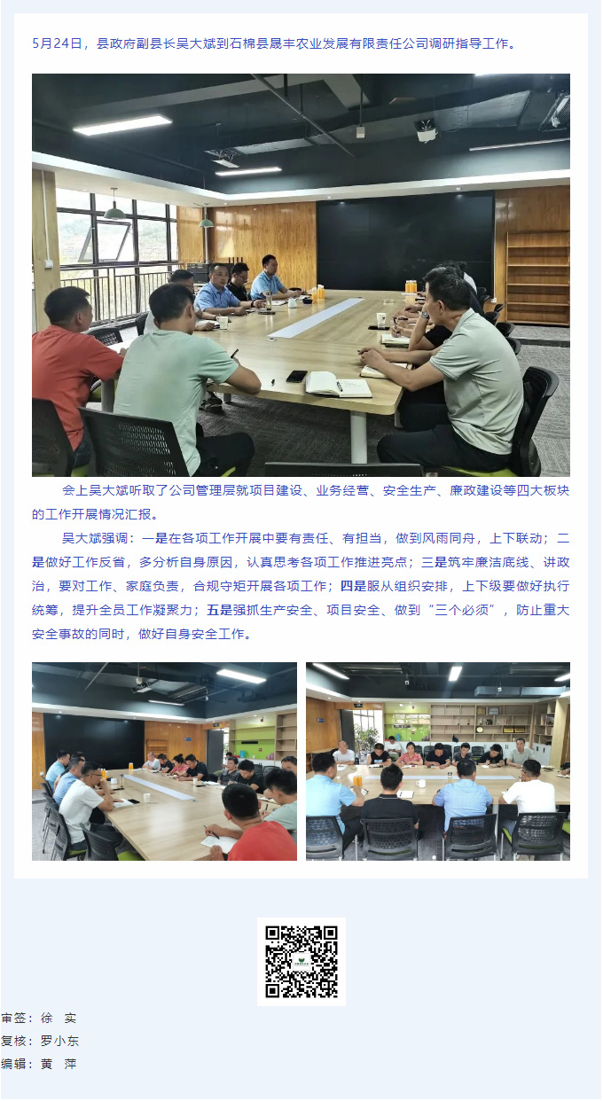县政府副县长吴大斌到石棉县球盟会官网入口农业发展有限责任公司调研指导工作