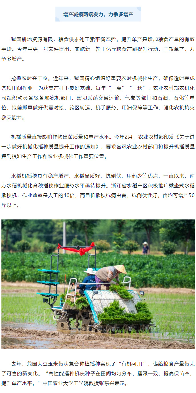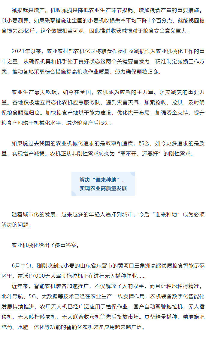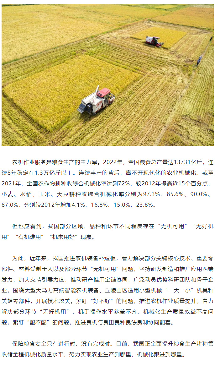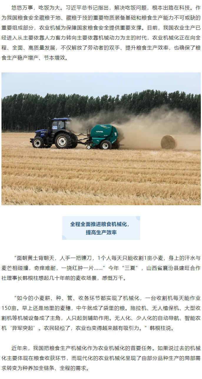 农业机械化为粮食增产保驾护航