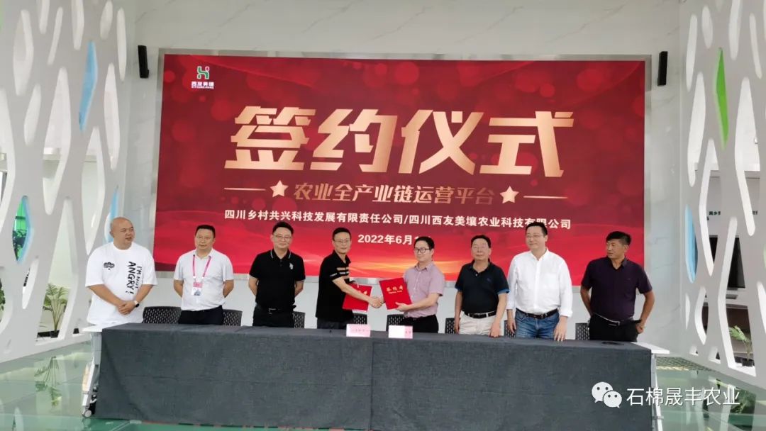 6月1日,四川乡村共兴科技发展有限责任公司与四川西友美壤农业科技有限公司在我司现代农业园区完成了项目合作签约仪式。双方致力打造四川农业全产业链运营平台,该平台将整合资源将石棉县打造成为川西地区农业新媒体电商孵化中心,农产品精加工中心,现代农业智能设备研发中心,农业信息大数据中心,农产品集散物流中心,现代农业技术服务中心。